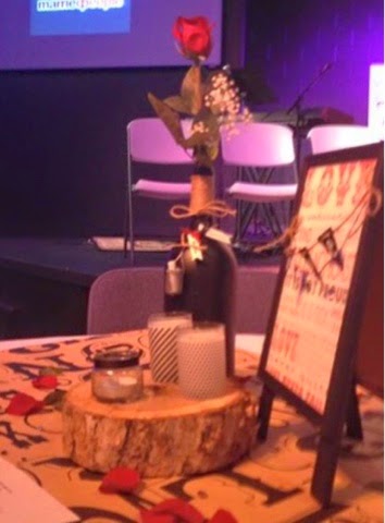 I was so busy that night I never got a picture of the centerpieces on the big tables but someone had taken this and posted it to Facebook: